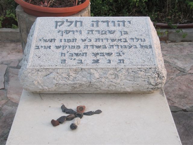 יהודה, בנם של חברינו שפרה ויוסף חלק, נולד באשדות-יעקב. כאן גדל והתחנך. היה בכיתה י"ב והתכונן להתחיל את שירותו בצה"ל בסוף שנת הלימודים כשלפתע נגדעו חייו. ב-8 לפברואר, יהודה נפצע קשה בנוסעו מהעבודה בבננות, בעלות העגלה על מוקש שהוטמן ע"י חבלנים ערבים. יהודה היה ביחד עם חיים מוצרי, חנן לרנר וגרהרד קלר, שגם הם נספו באותו אירוע. שלשה ימים נאבק על חייו. בן שבע עשרה וחצי היה במותו. ת.נ.צ.ב.ה